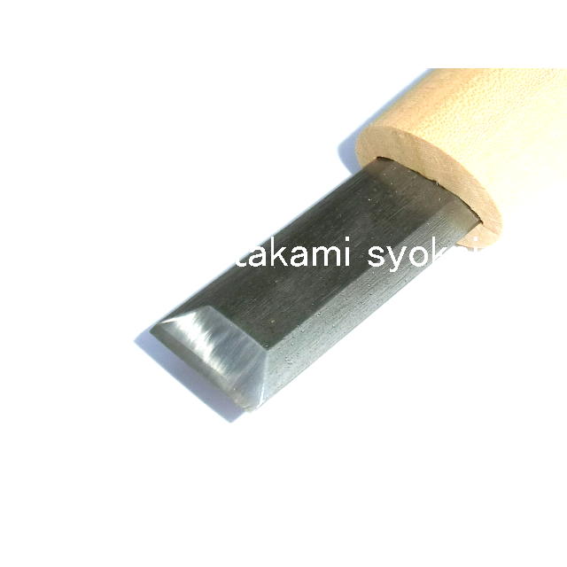 三木章の彫刻刀ハイス鋼(焼き入れ温度1200度)は安来鋼(800度)の焼き入れ温度よりも1.5倍も高温で焼き入れして,鋼が硬くなっています。鋼が硬いと木を鋭く削ることが出来ます。刃先を再研磨する時に摩擦熱で焼き戻り(鋼の硬度が下がる)しにくいので、切れ味が変化しません。