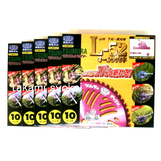 ※上の画像はツムラ角鳩印 刈払機用チップソー L-52オールラウンド 山林下刈兼草刈用 255×52P 5枚組です。